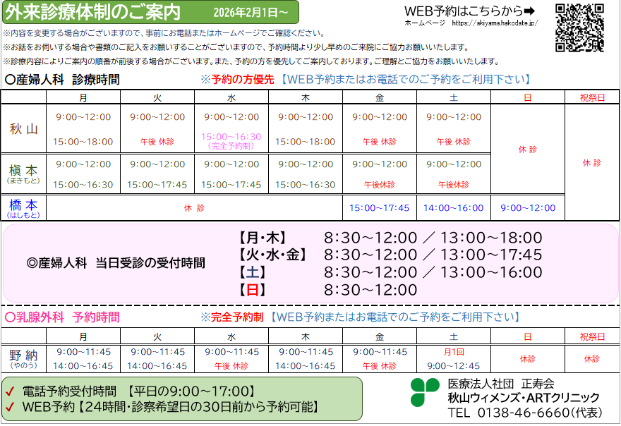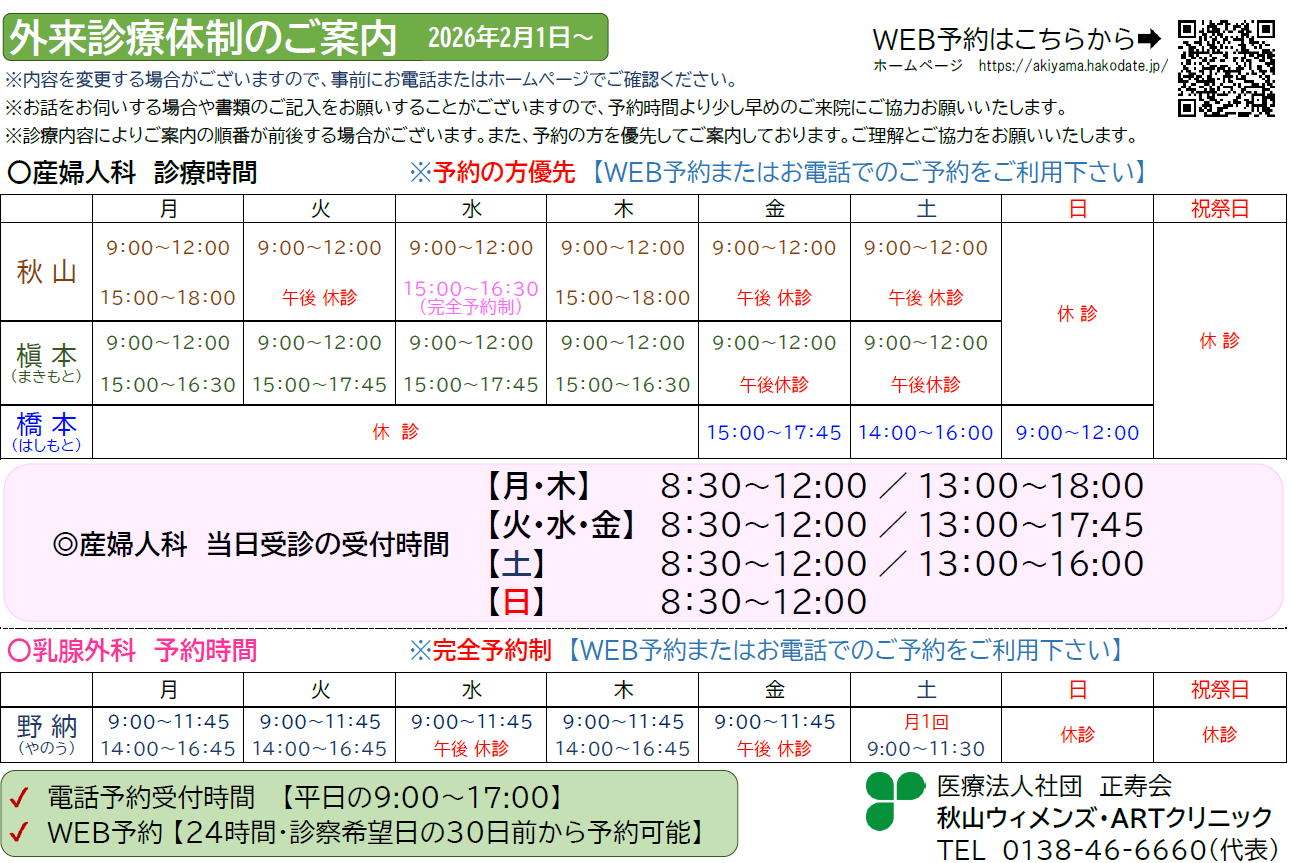 📢令和8年2月1日~外来診療体制一部変更のお知らせ